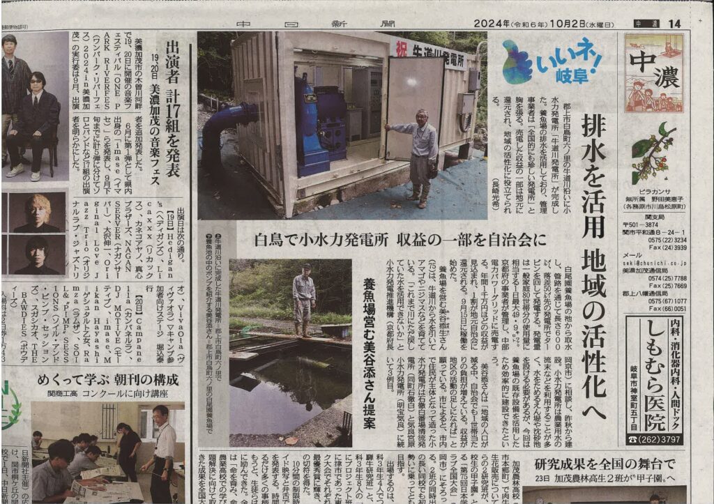発電した電力を売電することで収益を得ていますが、収益を得ることでその地域での 小水力発電事業が完成したのではない。地元自治会および地元漁協に売電額の中から 一部を売電期間の20年間に渡り還元することで事業が確立するものと考えています。 このことは地元新聞にも掲載されました。